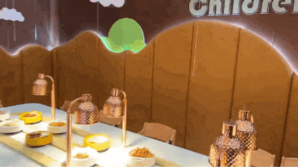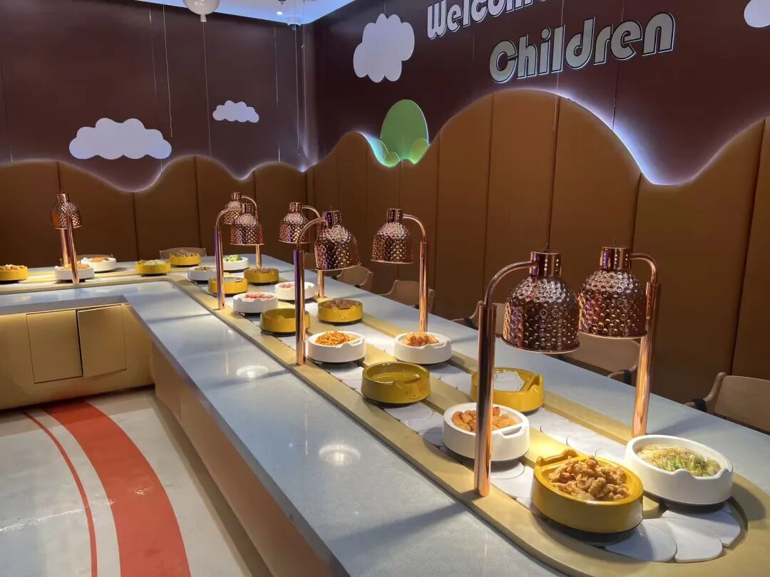 餐品通过传送带循环流转,孩子们可根据喜好自由选取,这一设计在提供便捷的同时,也极大增强了用餐的互动性与趣味性。目前,该区域共设有15个专属儿童餐位。