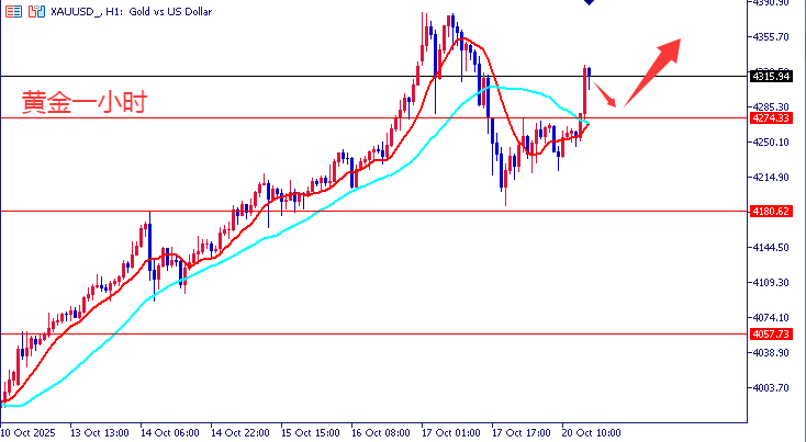 牛回头小憩后继续向上奔跑,美盘回落继续多。...回到盘面黄金一小时级别,均线继续金叉向上保持多头排列,黄金上涨还有动能。