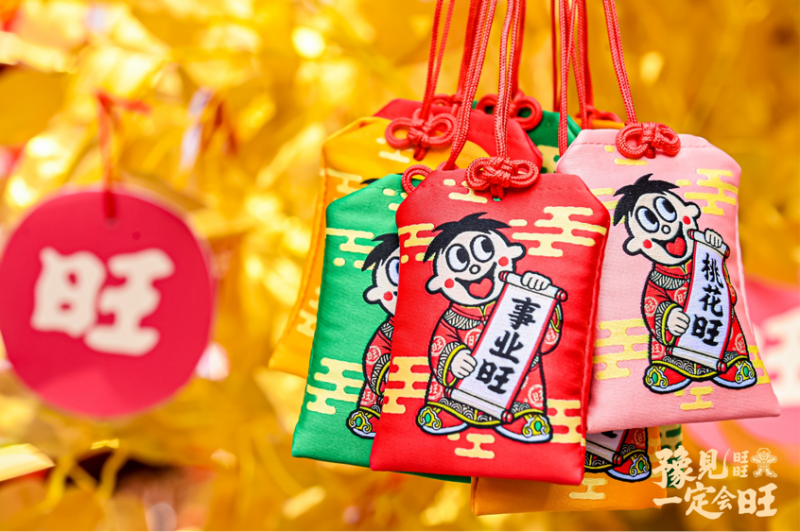 但最受欢迎的其实并非礼盒本身,而是随机附赠的“旺运锦囊+旺运手机贴”盲盒。四个版本(财运旺、事业旺、身体旺、桃花旺)对应年轻人最关注的生活议题,有消费者坦言:“抽到‘事业旺’手机贴后,立刻发朋友圈说‘接到旺旺offer’!”这种情感投射与近年爆火的寺庙手串、星座运势一脉相承。旺旺巧妙将零食从“充饥工具”转化为“好运媒介”,与豫园及城隍庙原本的祈福文化形成共振。