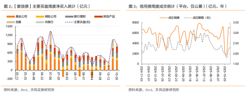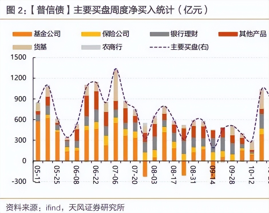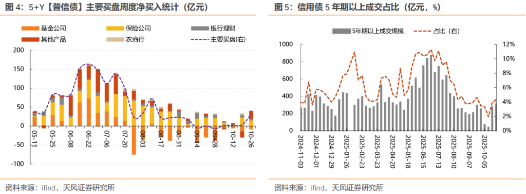 基金和银行理财交替成为普信债的主要买入力量,但增持主力仍在中短端信用品种上,对应信用债二级成交久期整体低位震荡,包括对超长信用债的买入力度相对平平。