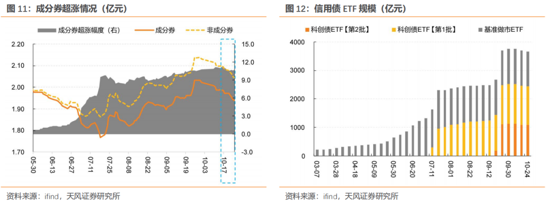 6月中下旬至7月上旬:信用债ETF规模快速增长,及第一批科创债ETF发行在即,催化信用债抢筹行为,尤其是指数成分券及相关个券,使得期间信用走出了相对独立的行情。