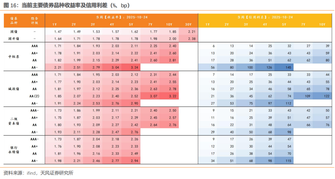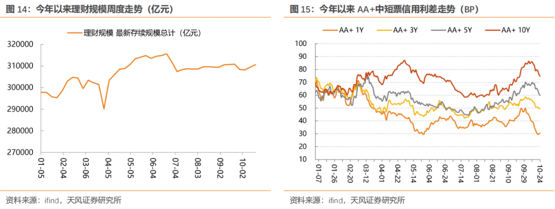 无论是基金还是理财,当周对信用债(主要是普信债)的净买入力度不算弱,一定程度上也支撑着信用走势与利率背离,信用利差主动压缩: