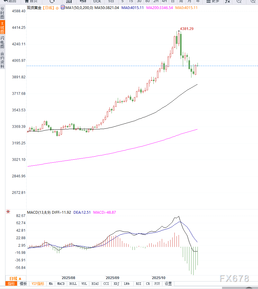 若反弹受阻并回落至3980美元下方,则可能再次测试3900美元支撑位。整体来看,金价走势仍处于弱势反弹阶段,尚未形成明确的上行动能。