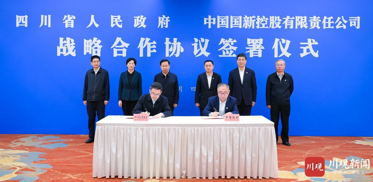 10月31日,四川省人民政府与中国国新控股有限责任公司签署战略合作协议,国新控股(四川)有限公司正式揭牌。省委书记、省人大常委会主任王晓晖,省委副书记、省长施小琳会见中国国新党委书记、董事长徐思伟一行,并共同见证协议签署。