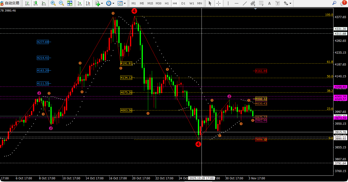 日线级别我们短期下方关注3972和3962的支撑即可,只有3962下破才会有机会去3900-3910附近进行二次多单。
