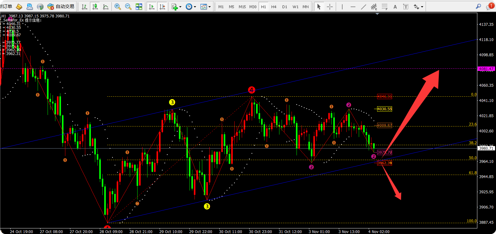 因此我们第一个多单需要在3962上方去操纵,而目前操作的最佳点位是3972-73附近。二次多单就需要在前期低点3915附近。