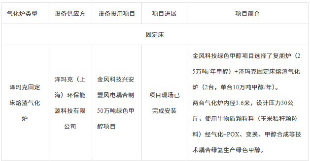 电气吉林洮南绿色甲醇项目采用加压流化床气化工艺后,金风绿色甲醇项目进一步验证了气流床气化炉“复朋炉”在生物质甲醇规模化生产中的可行性。