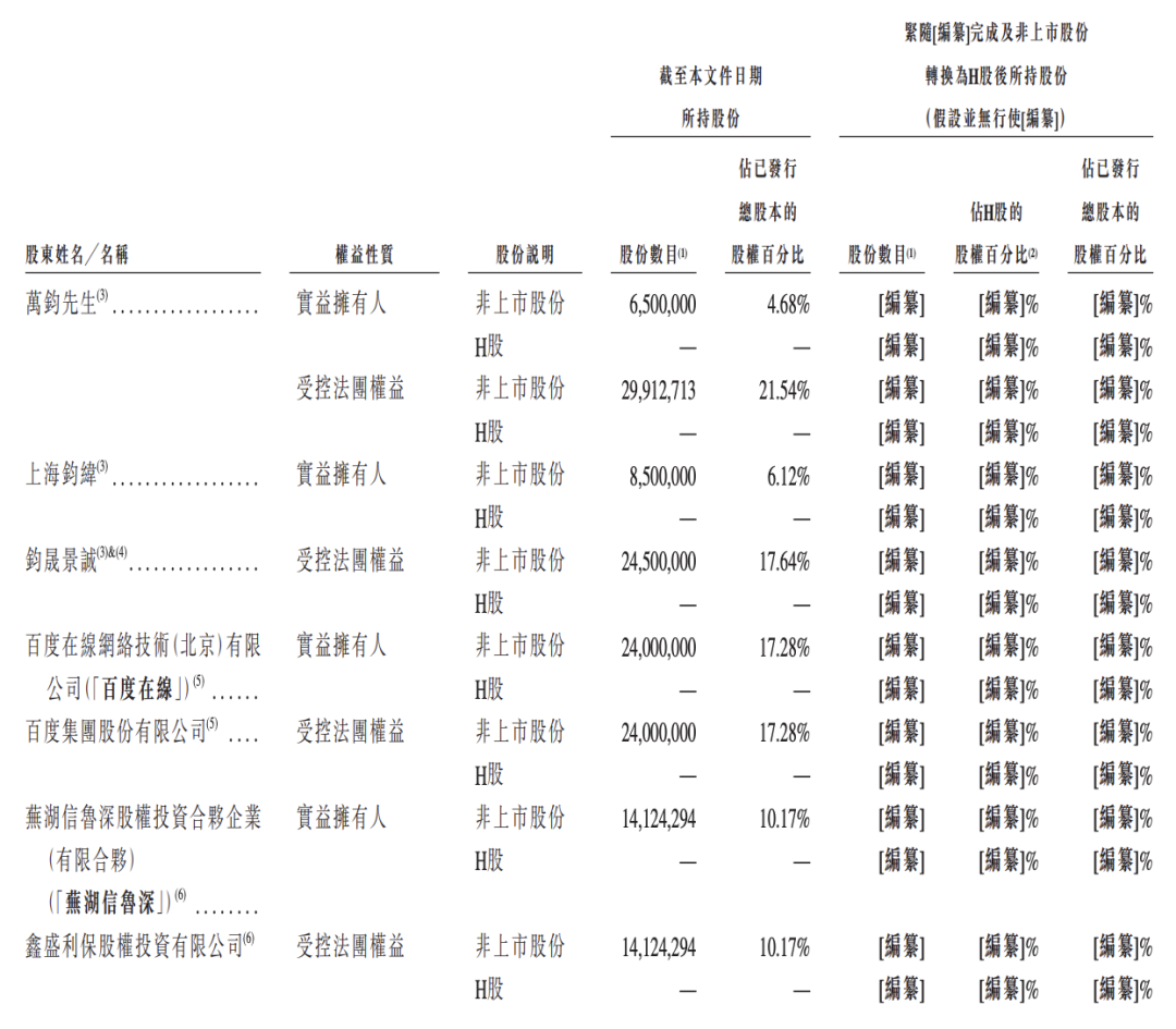 从股权架构可以看到,万钧、上海钧纬、北京成岳及员工激励平台构成了DeepWay的单一最大股东集团,持有DeepWay约26.22%的股权,其中万钧持股4.68%,而百度则持有DeepWay 17.28%的股权,为公司重要的战略股东。