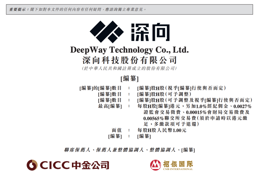 11月6日,深向科技股份有限公司(Deepway)向港交所提交上市申请书,联席保荐人为中金公司、招银国际。