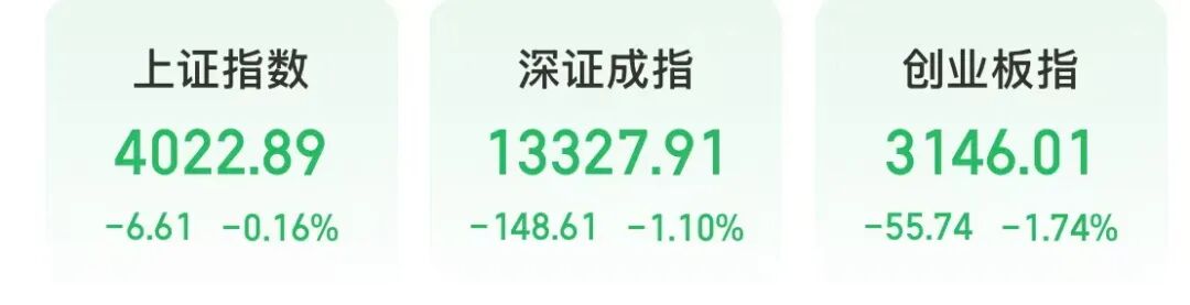 截至上午收盘,上证指数下跌0.16%,深证成指下跌1.1%,创业板指下跌1.74%。