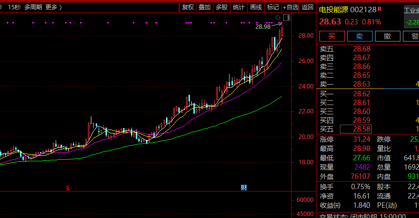 近期电投能源股价不断突破历史高点,11月14日该股盘中上触28.98元,再次创下历史新高,市值为641.76亿元。今年以来,该股节节走高,累计涨幅为52.45%。