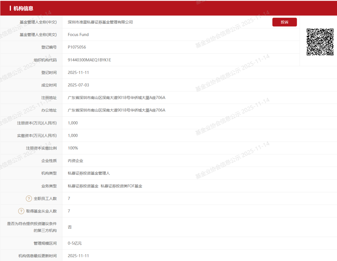 中国证券投资基金业协会(下称“基金业协会”)网站显示,一家名为“深圳市准星私募证券基金管理有限公司”(下称“准星私募”)的私募管理人日前完成登记。