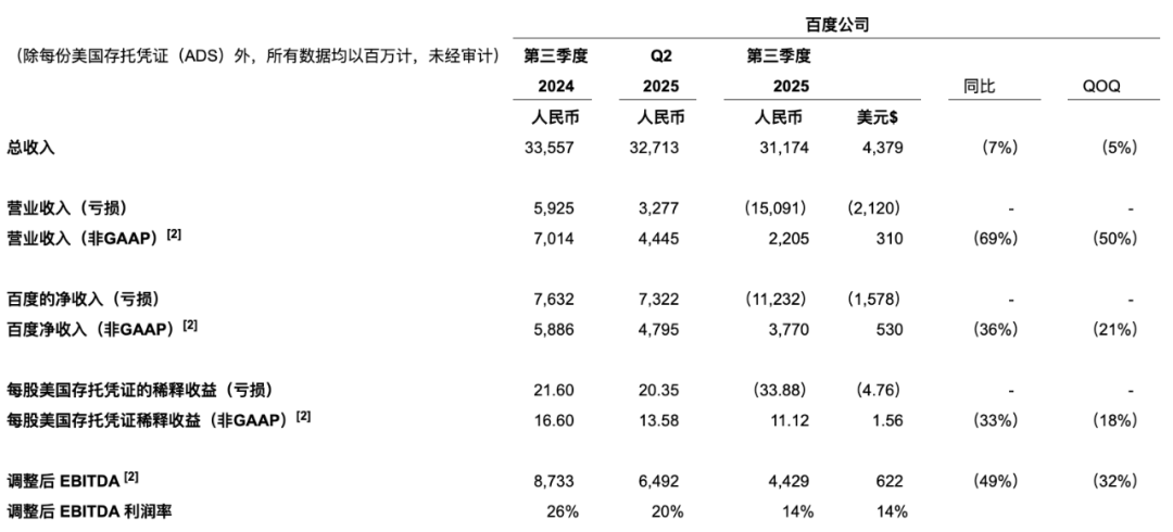 从整体财务数据来看,2025年第三季度百度总营收达312亿元,同比下降7%;作为核心业务板块,百度核心营收为247亿元,同比同样下降7%,核心业务短期面临一定压力。