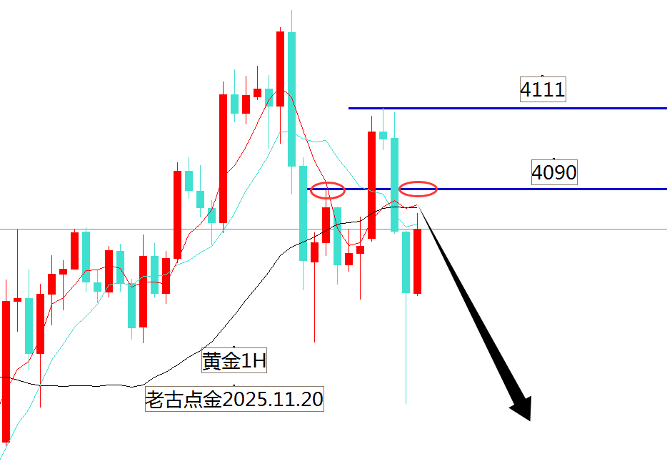 这两天的黄金蹦的有凶,上上下下的串,不过符合我们的预期,大家去看看昨天的分析说的是冲高回落,而且市场也给面子,昨天我们布局了3次多单吃肉,今天早盘黄金直接跳水了,早盘我们布局了4070空打掉又4085果断再次空,今天的白盘的思路老古是看高空看跌,今天的白盘不是那种直接咋盘的跌,是属于震荡跌,反弹就是空的机会,日线昨天十字星,上影线非常长,而且日线的5日和10日线全部聚到了一起了,压制位置就是在4090附近,今天的思路白盘我们依托4090继续空吧,白盘空头的目标是4000。