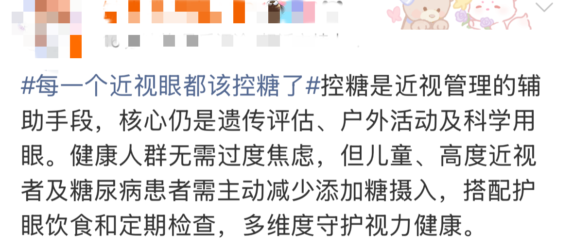 今天,#每一个近视眼都该控糖了#登上热搜,引发网友热议。