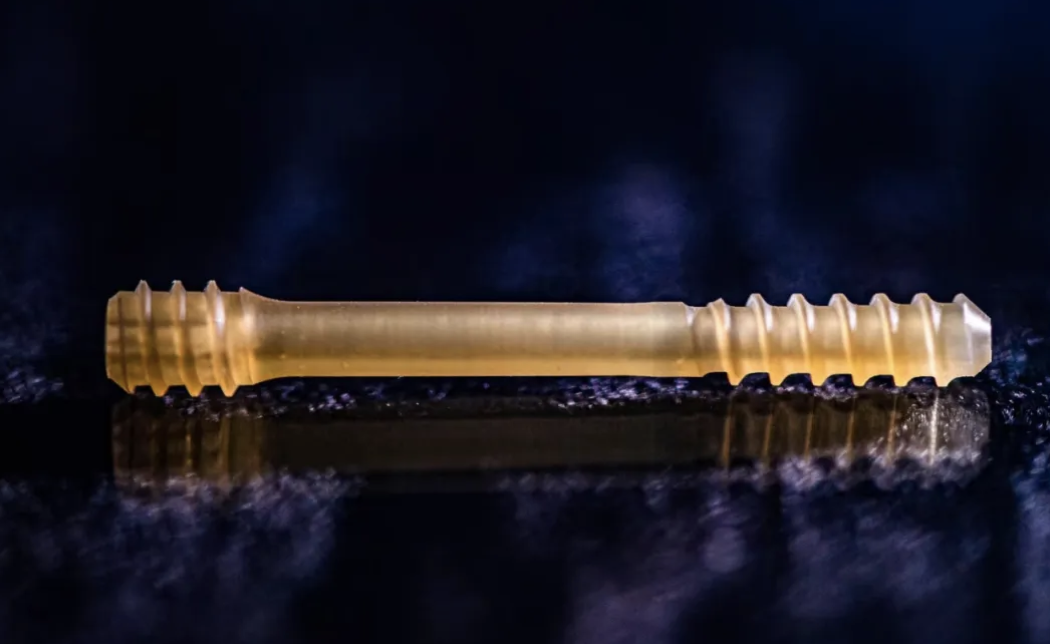 一枚长约4厘米的螺丝钉,力学性能超越钛合金,还能被人体自然吸收。大会圆桌论坛上,鑫缘茧丝绸集团股份有限公司总经理储呈平带来的全新生物医学材料,引发现场惊叹。“这是全球首创的‘蚕丝蛋白骨钉’。”储呈平透露,公司与中国科学院上海微系统所研发团队合作,从天然蚕茧中提取丝素蛋白,由此制成的高性能生物医用材料,有望打破目前相关器材依赖进口的局面。