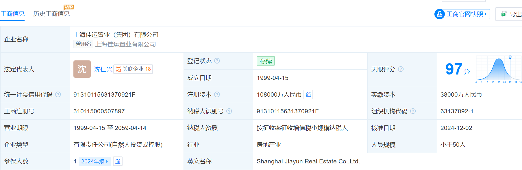 资料显示,佳运置业(全称为上海佳运置业集团有限公司)为上海老牌房企,总部位于浦东周浦。该公司由沈仁兴于1999年成立,开发项目有浦东川沙板块的“佳运公寓”、浦东周康板块的“仁和都市花园”。此前2022年,佳运置业在上海连落3子,相继开发项目“佳运名邸”、“佳运汇龙府”、“佳运瑞璟湾”。