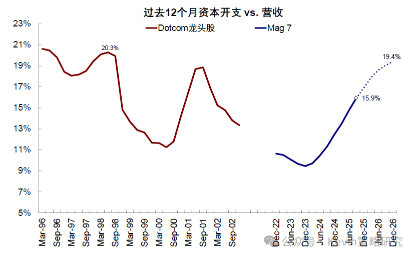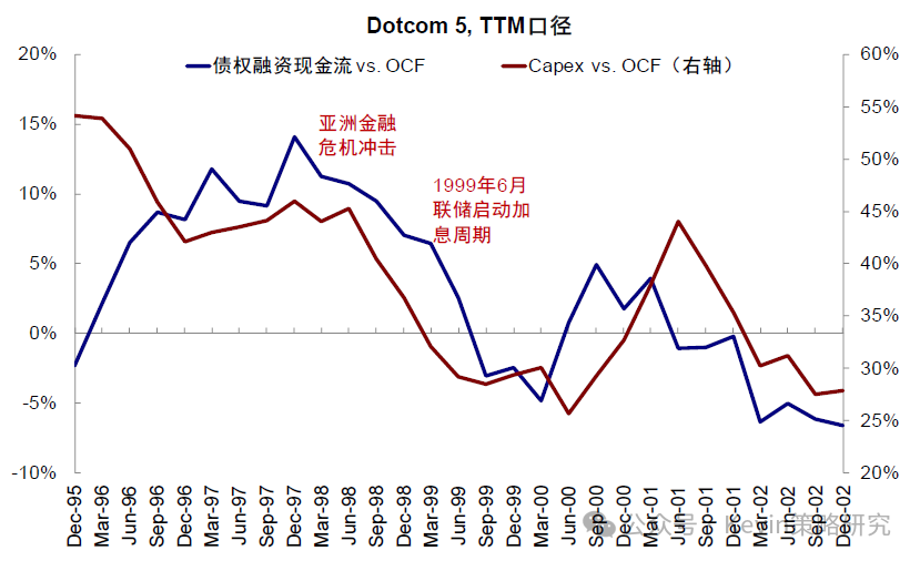 2️⃣AI投资是否过剩?投资强度不到科网时一半,类似1997~1998年,融资能力也好于当时