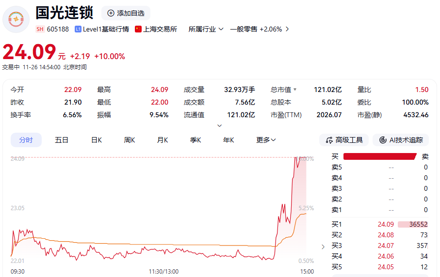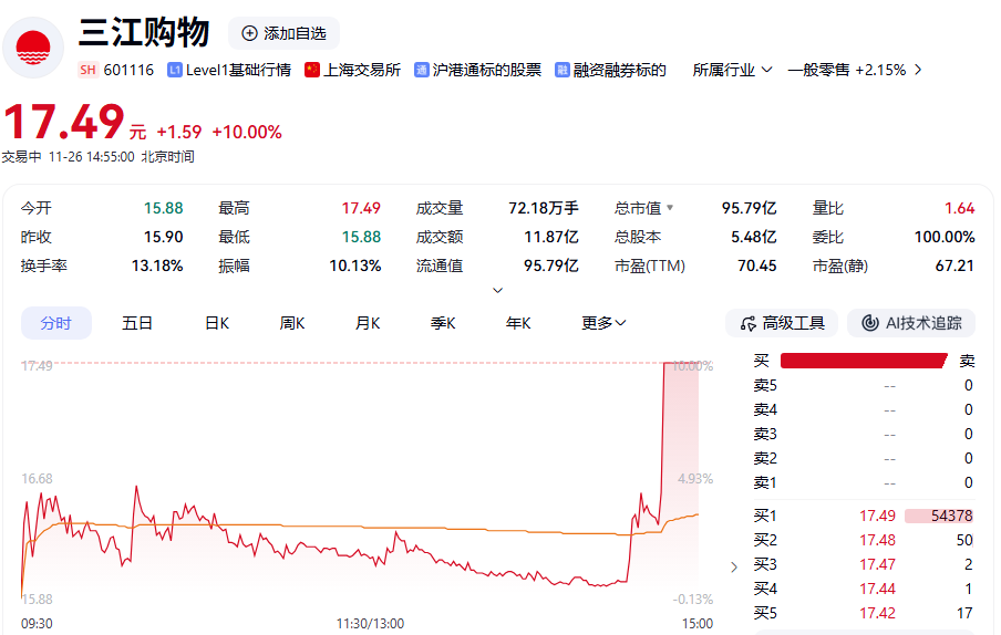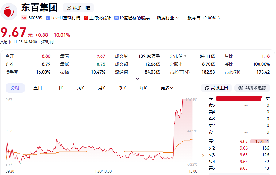 盘面上,零售概念股尾盘大幅拉升,截至发稿,东百集团、国光连锁、三江购物强势涨停。