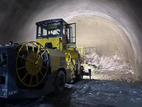 针对近万米级特长隧道的通风难题,项目团队采用“斜井+竖井”组合方案。蜀道集团四川交建XJ9标项目部负责人唐永会介绍,传统竖井施工工艺是从隧道内部向外施工,而这条隧道由于地形特殊性,采用反井法进行竖井施工,即从外部山体向隧道内施工。运用直径1.6米的钻头自上而下精准贯通,在四川省内属首次应用,较传统方法缩短工期60天,有效解决了崎岖地形中的出渣与通风难题。通过以上举措,建设团队成功攻克了锦屏隧道施工中的多项技术难题,保障了隧道安全贯通。