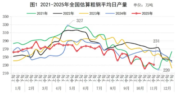 11月中旬重点钢企粗钢日产环比增长0.9%