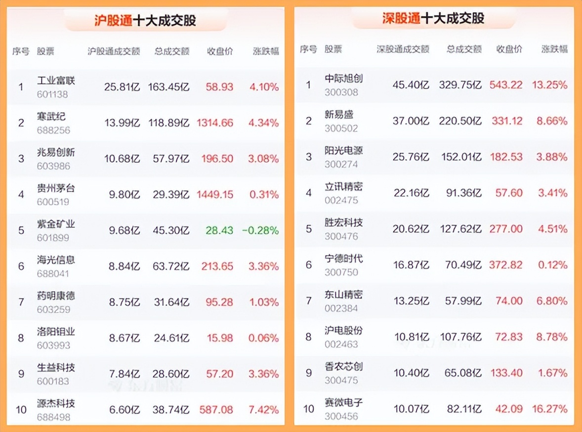 4、北向资金共成交2007.07亿元,占两市总成交额的11.25%——