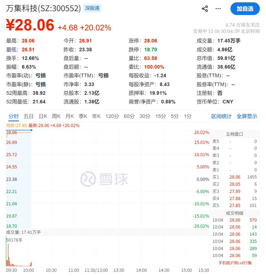 此前,博纳影业曾因《阿凡达3》预售利好而连续上涨。12月14日盘后,博纳影业公告称,关注到股吧等投资者交流平台内《阿凡达3》有关话题热度较高,影片尚未在全球院线上映,其票房收入尚难以预计,且公司控股子公司通过与TSG Entertainment Finance LLC合作授予公司《阿凡达3》的投资收益权比例较低,对公司短期业绩无重大影响。