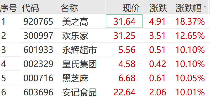 首发经济板块多股走强,皇氏集团、黑芝麻、安记食品等集体涨停。