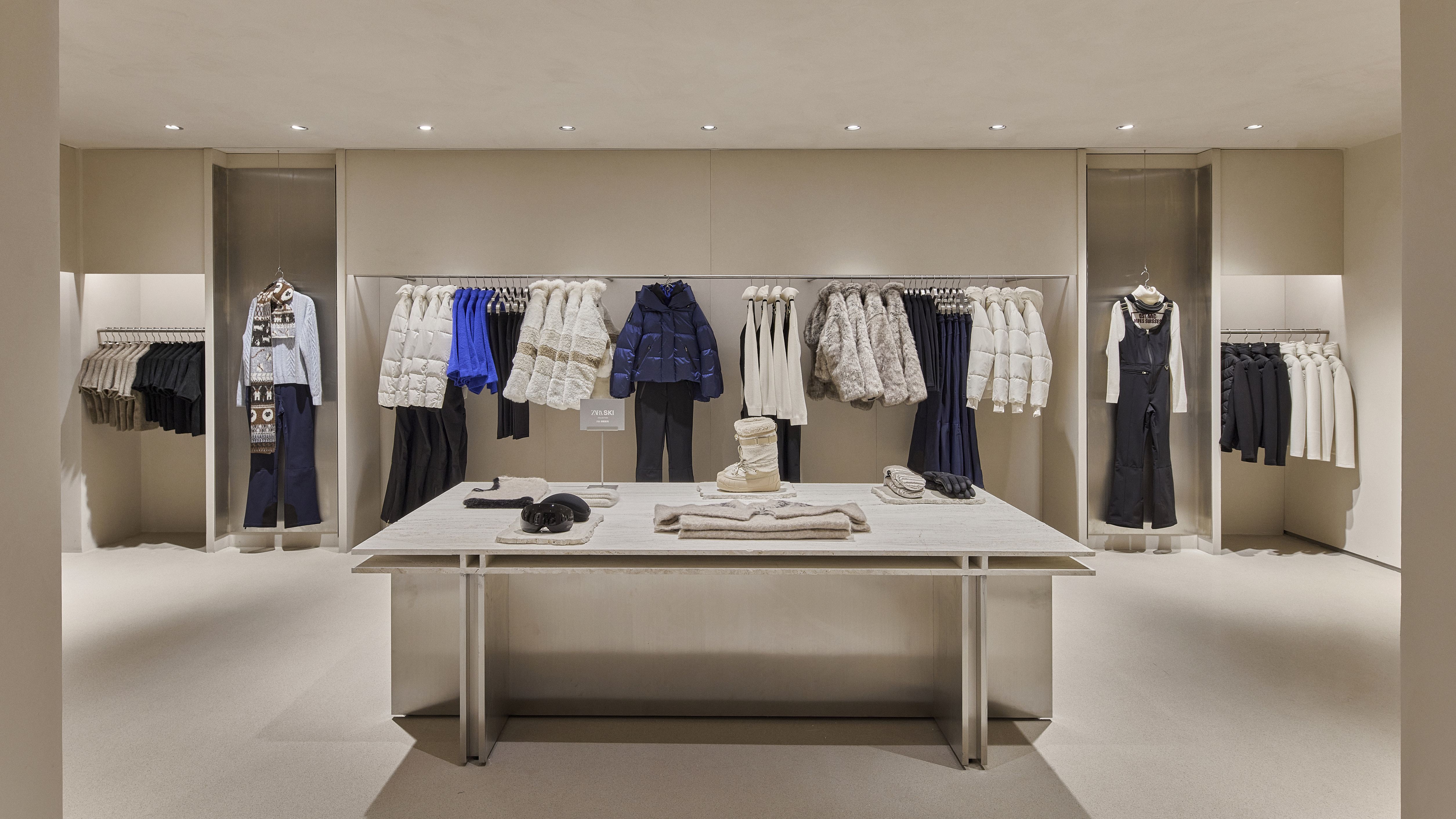 门店男装区域全新开辟ZaraAthleticz专属空间,汇集兼具运动性能与日常穿搭的多元运动休闲服饰。作为Athleticz系列的重要组成部分,滑雪系列依托高科技面料、精准剪裁,打造多功能冬季服饰系列。