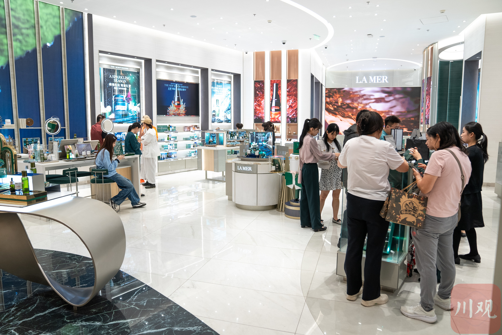 cdf海口国际免税城内,消费者正在选购免税商品