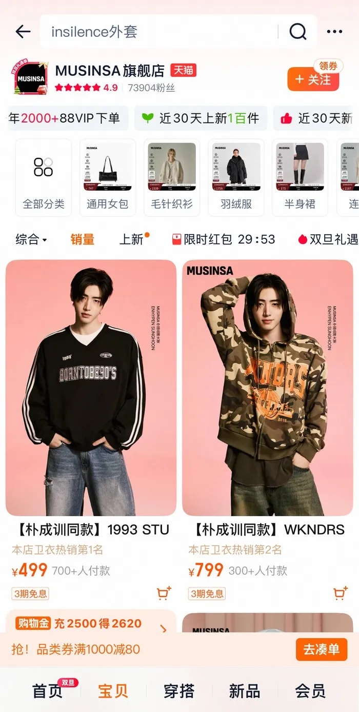 今年以来,在安踏的主导下,Musinsa先是9月在天猫密集开店,Musinsa Standard官方旗舰店与Musinsa旗舰店,后在线下渠道全面铺开,消息称Musinsa计划到2030年在中国市场扩张门店至100家,全球GMV目标达到3万亿韩元。