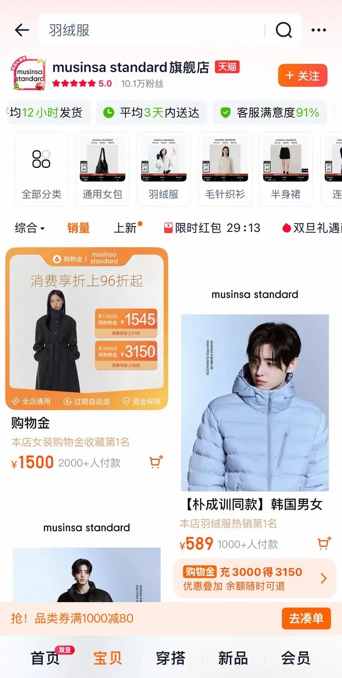进入中国市场后,Musinsa Standard与Musinsa在天猫已经分别积累了超10万店铺粉丝和7万店铺粉丝,销量最高的单品约售出千单左右,单品单价多在千元以内。有细心的网友已经发现,Musinsa Store天猫旗舰店已实现"下单48小时内发货",而发货地正是安踏位于福建泉州的总仓,物流效率较纯外资品牌提升显著。
