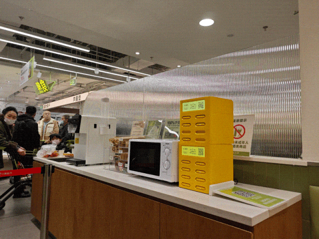 此外,小象超市还设置了就餐区域,并为消费者提供免费饮水、微波炉、电子秤、筷子、吸管、手套等。