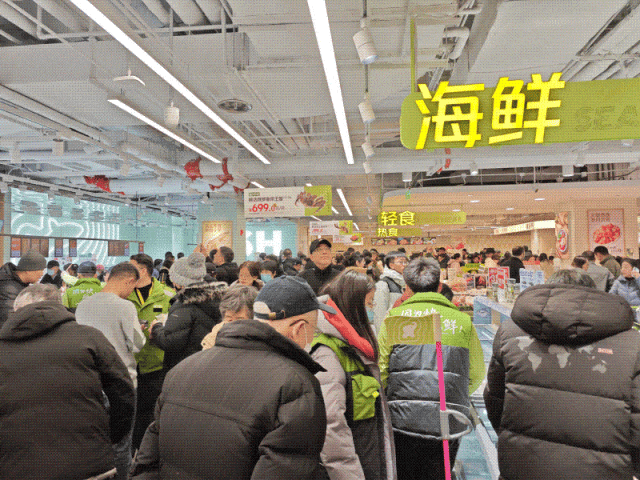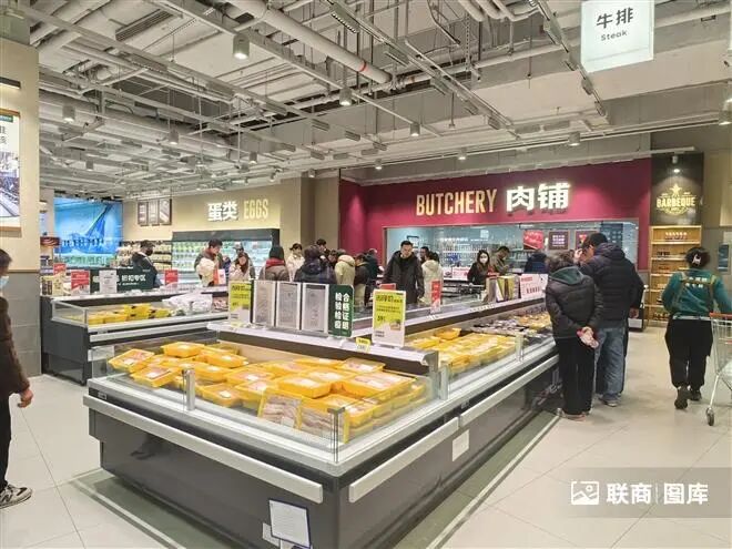 联商网在现场看到,门店开业首日,一大早门口已经排起长队,生鲜区、烘焙区挤满了挑选商品的顾客。