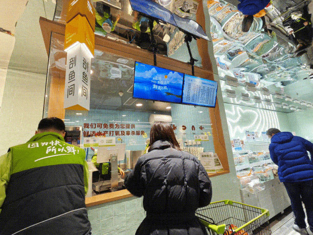 联商网还注意到,“将服务细节拉满”也是小象超市体验店的一大特色。每位服务员热情周到地向顾客问好;海鲜区提供宰杀、切片、打氧服务,肉禽区支持切块、切片、切丝、绞馅等精细化服务;现场随处可见的标牌上都写着商品搭配推荐、食谱分享、挑选方法等,让超市更具“烟火气”,也让消费变得充满“人情味”。