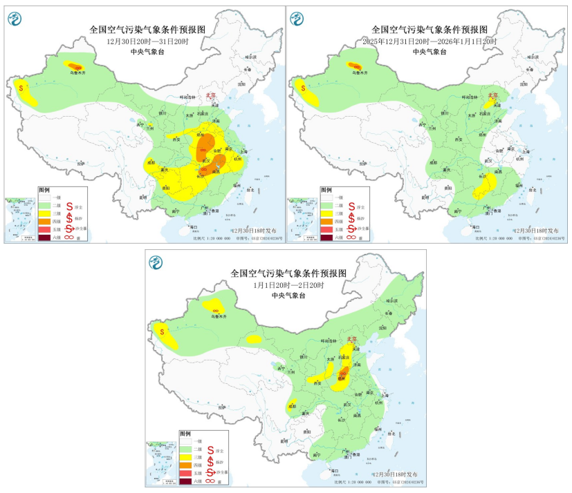 中央气象台预计,12月30日至1月2日,有强冷空气影响我国,东北地区、西北地区东部、黄淮西部及江淮以南大部地区降温明显,部分地区降温幅度达10℃以上。