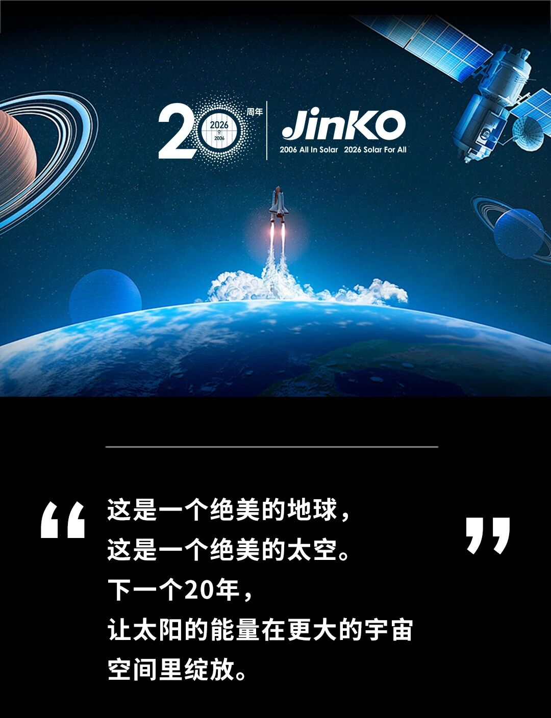 “这是一个绝美的地球,这是一个绝美的太空。下一个20年,让太阳的能量在更大的宇宙空间里绽放。”
