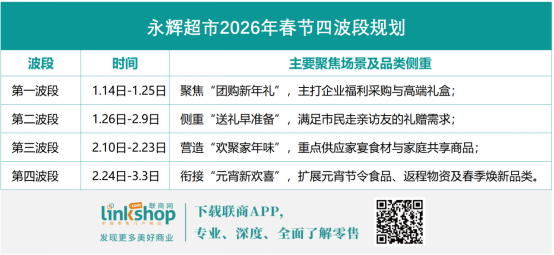 此外,永辉还着力打造可逛、可玩、可分享的沉浸式购物场景,全国调改门店统一设置“新永辉 新年味”主题专区,融合年货集中陈列、民俗互动及红包抽奖等活动,并结合从腊八派粥到元宵猜谜的系列节庆互动,增强购物过程的趣味性与仪式感;调改后的门店有充足的物理空间增强互动,也更加有利于提升用户“逛感”。