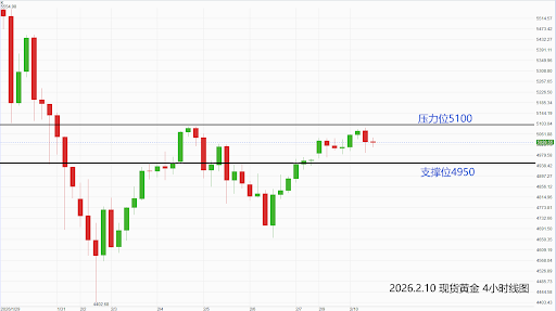 现货黄金:建议偏多操作,多单参考价位5010,止损位4950,获利目标5100附近。