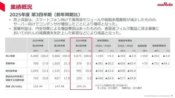 2025财年全年盈利预测已上调,销售额上调,营业利润下调。销售额因日元持续贬值,加之AI服务器及周边设备搭载量增加、智能手机产量提升带动需求扩大,上调600亿日元至1.8万亿日元。