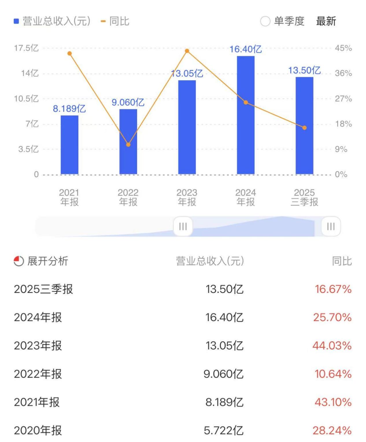 数据显示,2020年至2025年前三季度,伟创电气分别实现营收5.72亿元、8.19亿元、9.06亿元、13.05亿元、16.40亿元、13.50亿元,分别同比增长28.24%、43.10%、10.64%、44.03%、25.70%、16.67%;分别实现净利润0.88亿元、1.27亿元、1.40亿元、1.91亿元、2.45亿元、2.25亿元,分别同比增长52.13%、44.76%、10.38%、36.38%、28.42%、6.74%。