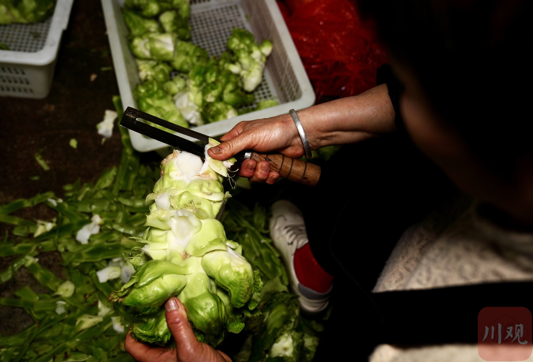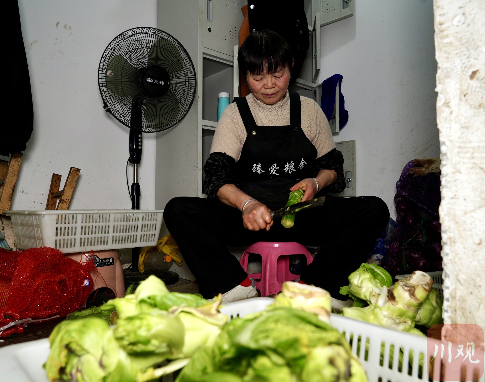 2026年2月20日,在成都市双流区黄水镇一家餐厅,周玉芳削莴笋为客人准备晚上的食材。