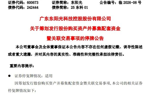 2月24日早间,上交所网站显示,东阳光(600673)停牌,停牌原因为拟筹划重大资产重组。