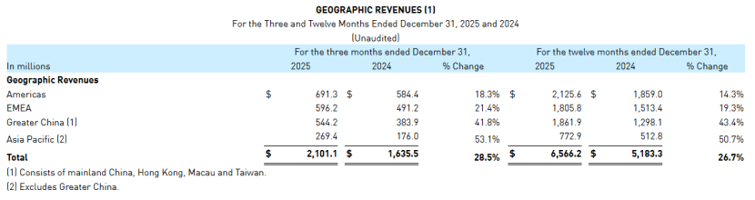 该季度,亚玛芬在全球地区均实现增长。其中,美洲市场收入同比增长18.3%至6.91亿美元(约合人民币47.27亿元);欧洲、中东和非洲市场增长21.4%至5.96亿美元(约合人民币40.77亿元);大中华区市场收入大涨41.8%至5.44亿美元(约合人民币37.22亿元);除中国以外的亚太市场大涨53.1%至2.69亿美元(约合人民币18.40亿元)。
