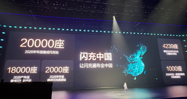 王传福表示,比亚迪要在2026年底前全国建成20000座闪充站,截至2026年3月5日,已建成4239座闪充站,并将在2026年5月1日前建成1000座闪充高速站,2026年年底建成2000座闪充高速站。