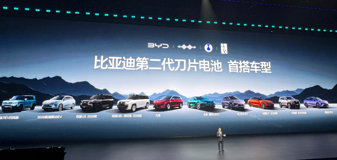 “今天发布的不是PPT技术,而是一发布即量产上车。”王传福介绍,首批搭载比亚迪第二代刀片电池的车型包括仰望U8 2026款、仰望U8L鼎世版2026款、大唐、全新腾势Z9GT、仰望U7 2026款、宋Uitra EV、方程豹 钛3闪充版、海豹07EV、方程豹 钛7EV闪充版共10款车型。