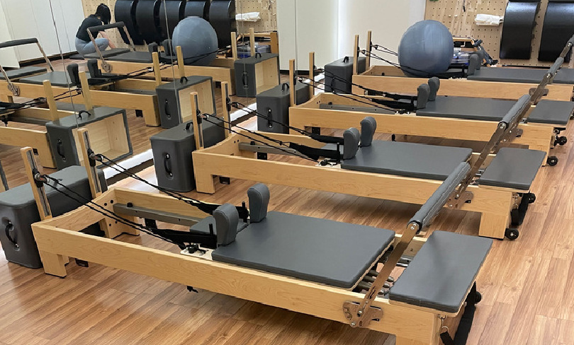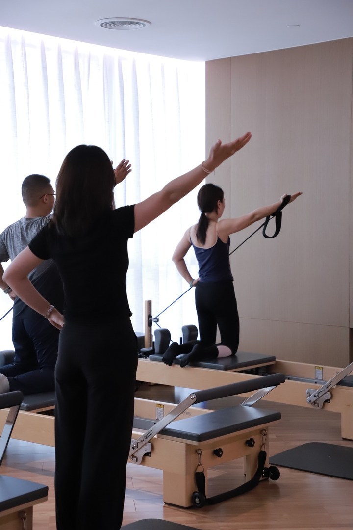 3月4日中午,成都市东大街一家普拉提器械馆内,几位女性学员在教练的指导下,在普拉提核心床上进行精准的核心控制训练。