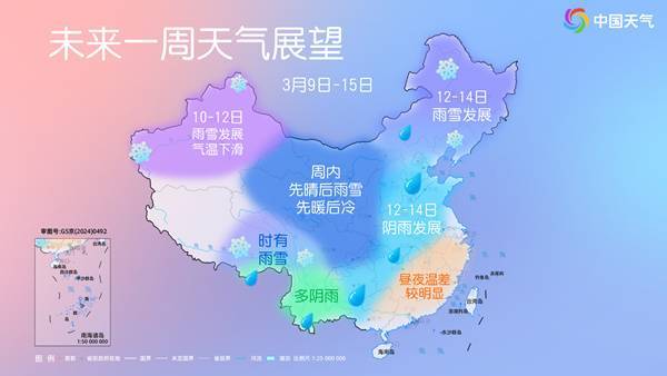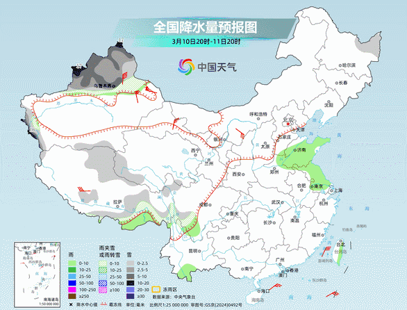 不过,随着冷空气的到来,10日起新疆的雨雪开始增多。之后冷空气东移并配合明显的暖湿气流,西北、西南至华北、东北将迎来一轮大范围的降水过程。