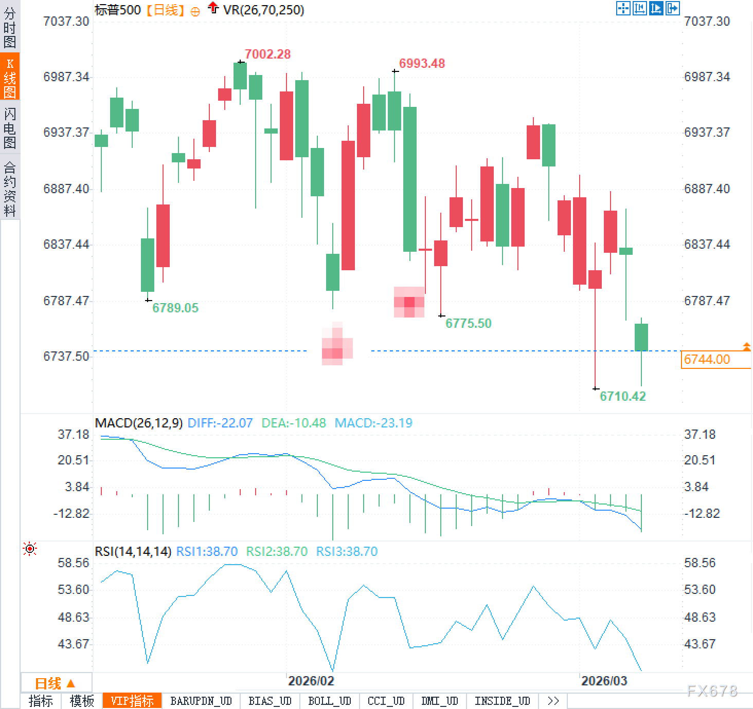 | 日内低点 | 6711 | 短期支撑考验 |