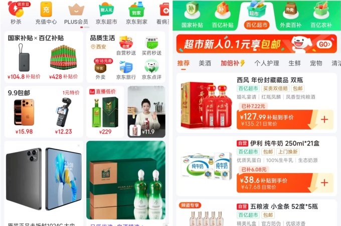 如果你最近打开京东APP,可能会发现一个变化:APP顶部导航栏左下方“国家补贴x百亿补贴”板块中,多了一个“百亿超市”频道。